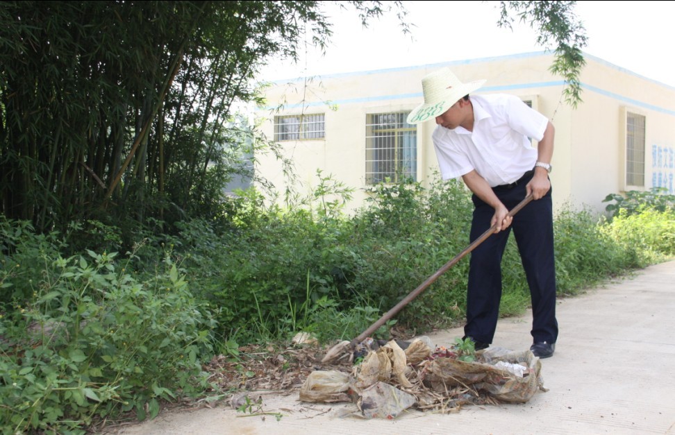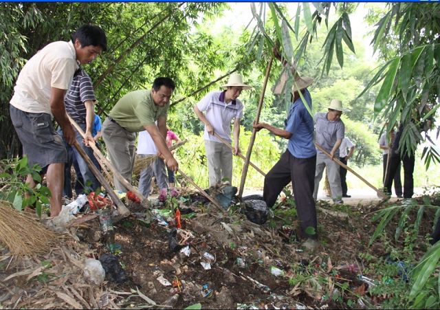 图2为干部与群众一起在村道边清理垃圾的情景。