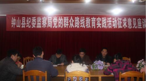 3月18日,为深入贯彻群众路线教育实践活动的要求,钟山县纪委监察局邀请了部分乡镇纪委书记、监察室主任,县直有关单位纪检组,企业代表、乡镇“两代表一委员”代表、村两员代表等开展专题座谈,广泛听取机关单位和社会各界对纪检监察系统“四风”问题的意见和建议。