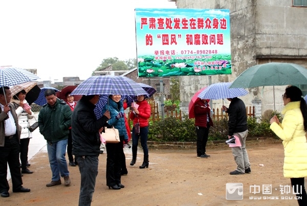 2月23日,县纪委率部分人大代表、政协委员及无党派民主人士和党风政风监督员组成的调研组一行20余人,先后深入钟山镇杨岩塘、回龙镇茅栗岗、清塘镇枫木村,对开展查处发生在群众身边“四风”和腐败问题专项工作进行巡查调研。