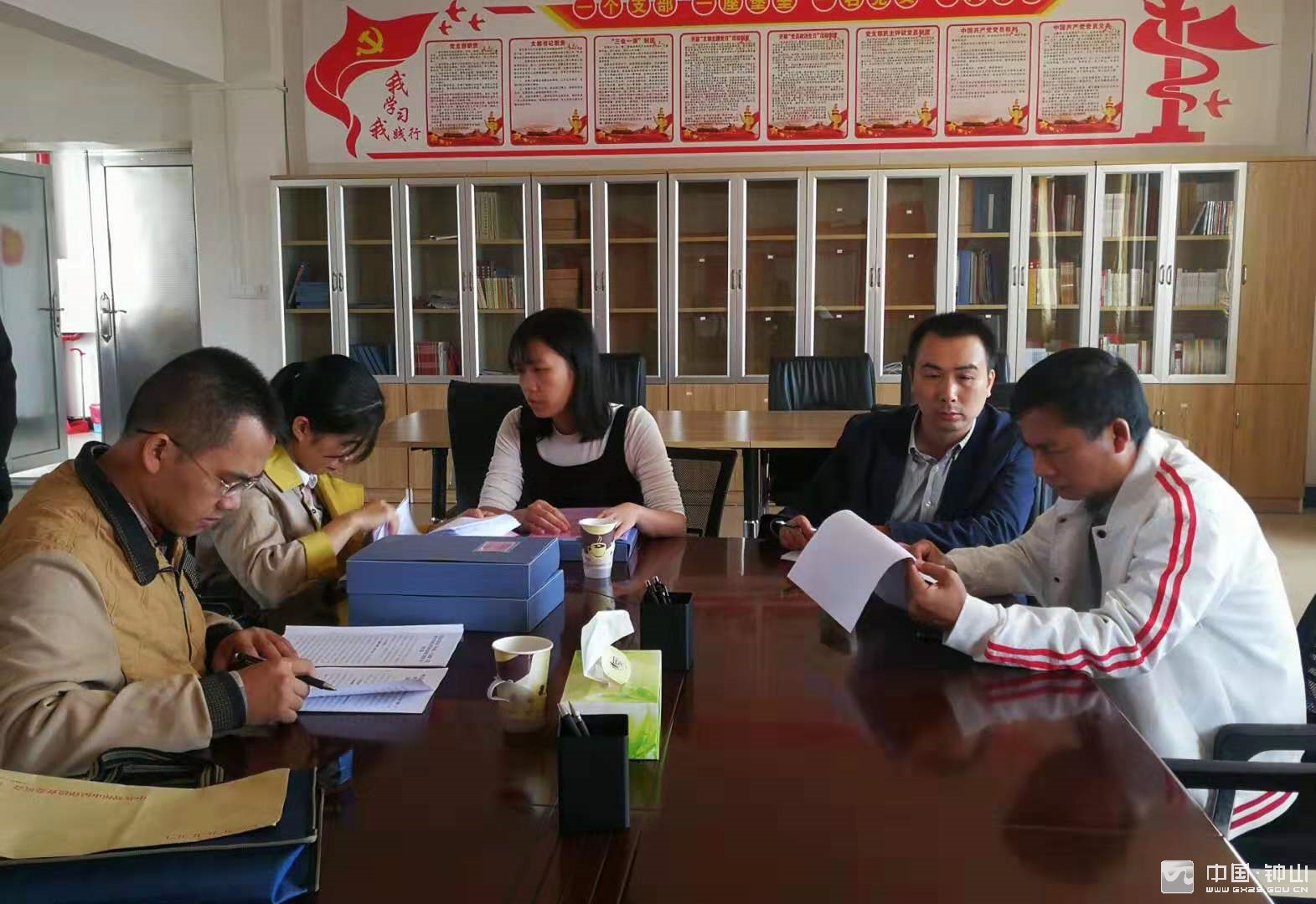 图为韩必禄(右一)到县纪委调研并查看相关台账