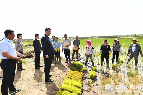 6月8日至10日,中共中央总书记、国家主席、中央军委主席习近平在宁夏考察。这是6月9日下午,习近平在银川市贺兰县稻渔空间乡村生态观光园,同正在劳作的村民亲切交谈。新华社记者 谢环驰 摄
