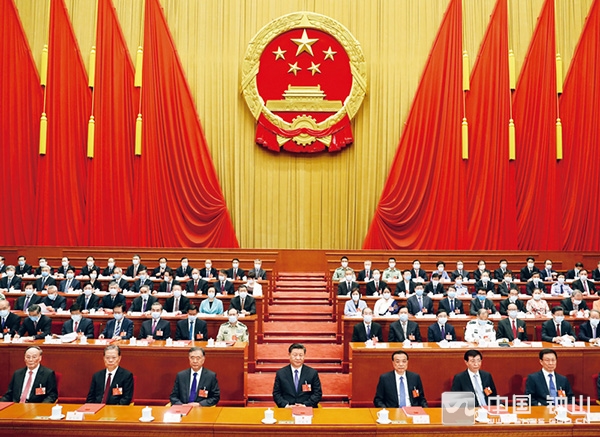 2020年5月28日,第十三届全国人民代表大会第三次会议在北京人民大会堂闭幕。党和国家领导人习近平、李克强、汪洋、王沪宁、赵乐际、韩正、王岐山等在主席台就座,栗战书主持闭幕会并发表讲话。 新华社记者 鞠鹏/摄