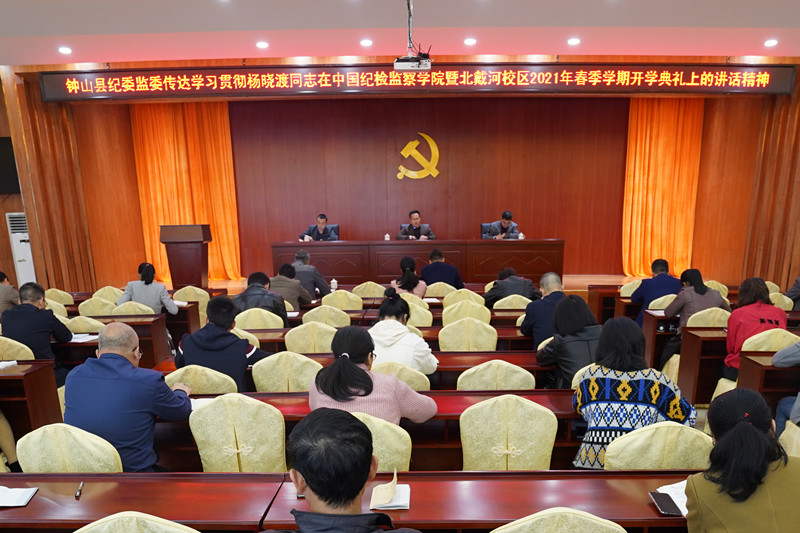 3月15日,钟山县纪委监委召开全体干部职工会议,传达学习杨晓渡同志在全国市县纪委书记培训班2021年春季学期开班仪式上的讲话精神。县委常委、县纪委书记、县监委主任黎祖旗参加会议并作讲话,县纪委副书记、监委副主任杨芳宁主持会议。