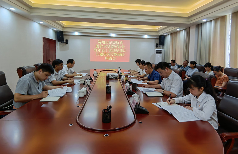 随后,在县纪委监委机关召开脱贫攻坚监察监督专题和年轻干部违纪违法原因分析及对策建议专题座谈会。会上,黎祖旗同志汇报了钟山县脱贫攻坚监察监督工作情况、本地年轻干部违纪违法现象和存在的问题。