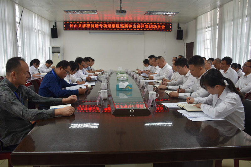 10月9日上午,钟山盛泽集团召开涉粮问题专项巡察工作动员会。县纪委常委、县委巡察办主任、县委巡察工作领导小组成员董兴秀,县纪委常委、县委涉粮问题专项巡察组组长陈运泽到会指导。钟山盛泽集团党委书记宋强主持会议并作表态发言。