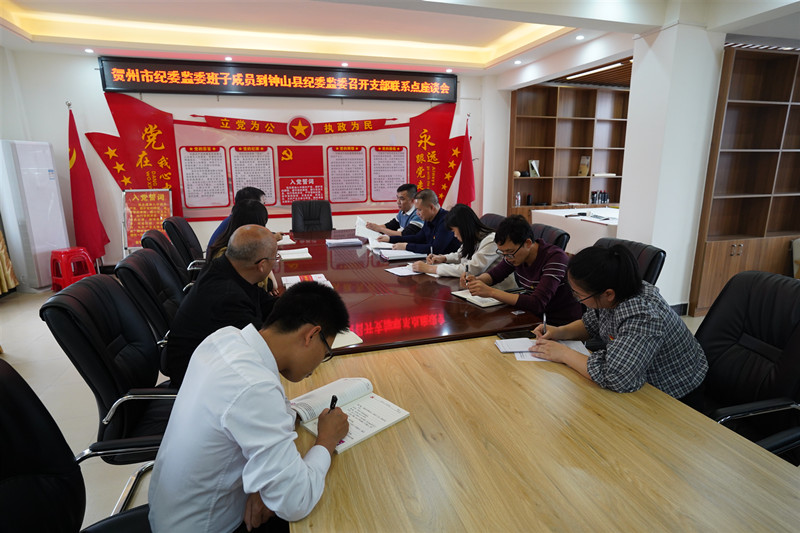 3月18日上午,市纪委副书记、市监委副主任廖正聪带队到党建工作联系点——钟山县纪委监委机关第一党支部,调研指导党建工作,参加支部座谈会议,了解掌握各项工作开展情况。