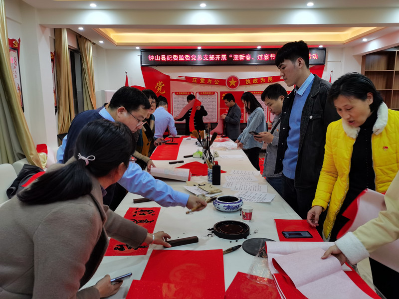 春节将至,为营造崇廉尚德、风清气正的廉政文化氛围。2月7日—2月8日晚,钟山县纪委监委党总支部开展“迎新春 送春联 过廉节”主题党日活动。