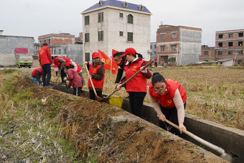 活动中,大家肩扛锄头,手握镰刀、铁锹,按照活动部署分工合作,共同清淤除杂、清理垃圾、疏通水系,没过多久,脏乱的水渠就变得焕然一新,村边的路也变得干净整洁。东凤村委阶源村的一位大叔看到“大变身”的水渠,喜笑颜开地说:“渠底淤泥不见了,渠道两边杂草也清理干净了,来年春耕春种农田不怕没水喝了!”