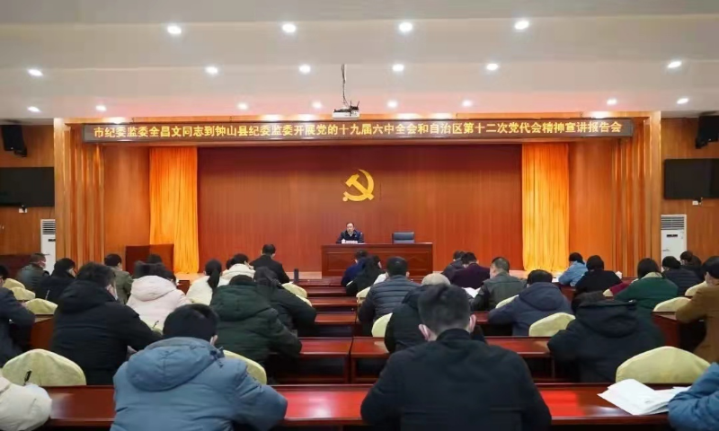 12月31日,市纪委副书记、市监委副主任全昌文到钟山县纪委监委向全县纪检监察干部宣讲党的十九届六中全会和自治区第十二次党代会精神。