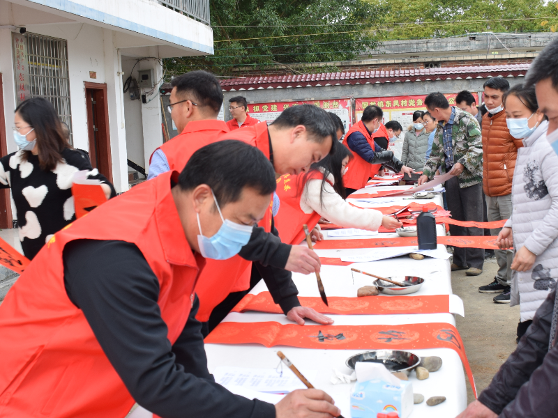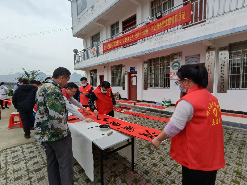 “清风盈大地,正气满乾坤”“平安如意吉星照,金虎呈祥福满堂”……在送福、送春联活动现场,书法爱好者们笔锋婉转、妙句成双,将祝福浓缩于字里行间,把一副副平安和谐、吉祥如意、传承清廉家风的春联送到东凤村党员干部群众手中,表达了对他们的节日问候和祝福,营造积极向上、崇廉尚洁的良好社会氛围。