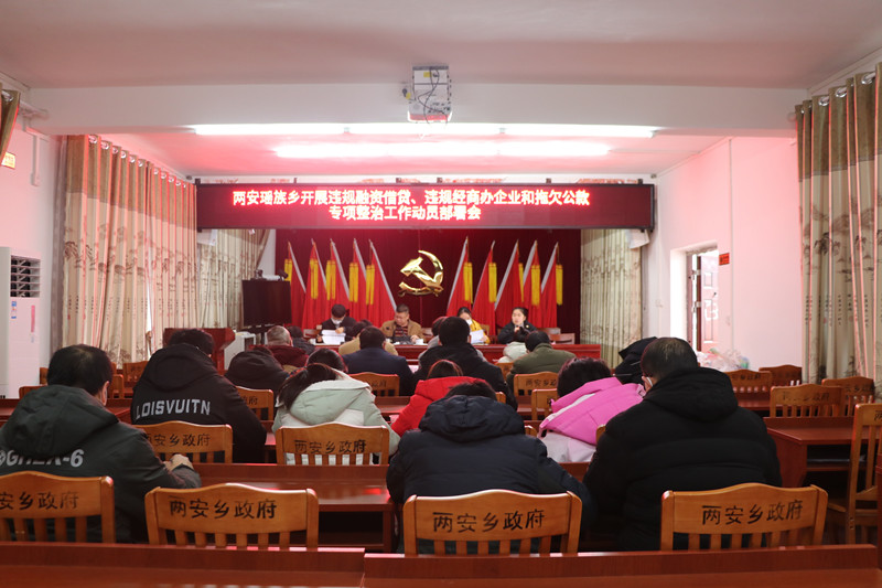 为贯彻落实好上级关于开展违规融资借贷、违规经商办企业和拖欠公款专项整治工作相关要求,确保整治工作落地见效。2月17日上午,两安瑶族乡召开违规融资借贷、违规经商办企业和拖欠公款专项整治工作动员部署会,该乡班子成员、各工作组组长、各站所负责人、各村党组织书记参加会议。