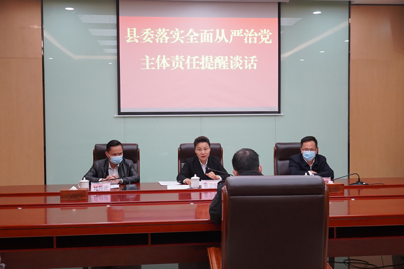 为进一步压实全面从严治党主体责任,推动党委(党组)书记“第一责任人”责任落细落实,3月30日,县委书记黄卫东就落实全面从严治党主体责任对部分乡镇、县直单位“一把手”开展“三对一”提醒谈话。县委常委、县纪委书记、县监委主任黎祖旗,县委常委、组织部部长杨超武参加约谈会。(县纪委监委党风政风监督室 江栋)
