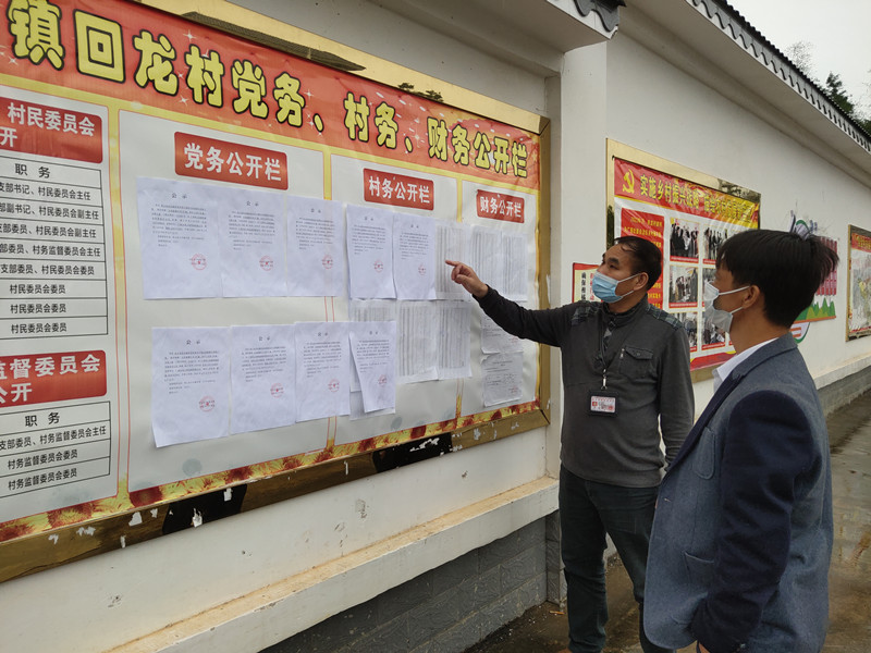 图为回龙镇纪委在该镇回龙村委检查村务公开栏