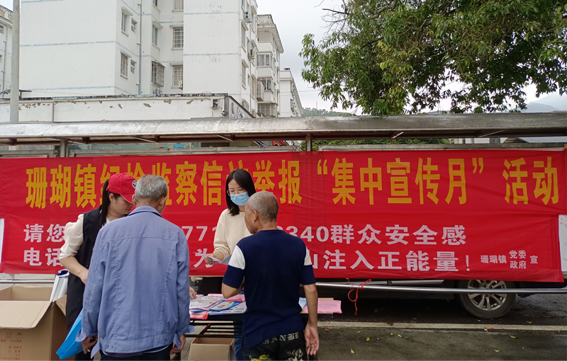 为深入贯彻落实《信访工作条例》各项规定,进一步规范、加强信访工作,畅通、拓宽信访举报渠道,提高群众知晓率、参与度,了解信访工作内容及依法信访必要性,增强依法信访、理性维权意识,5月以来,珊瑚镇采取多种形式开展信访举报“集中宣传月”活动。