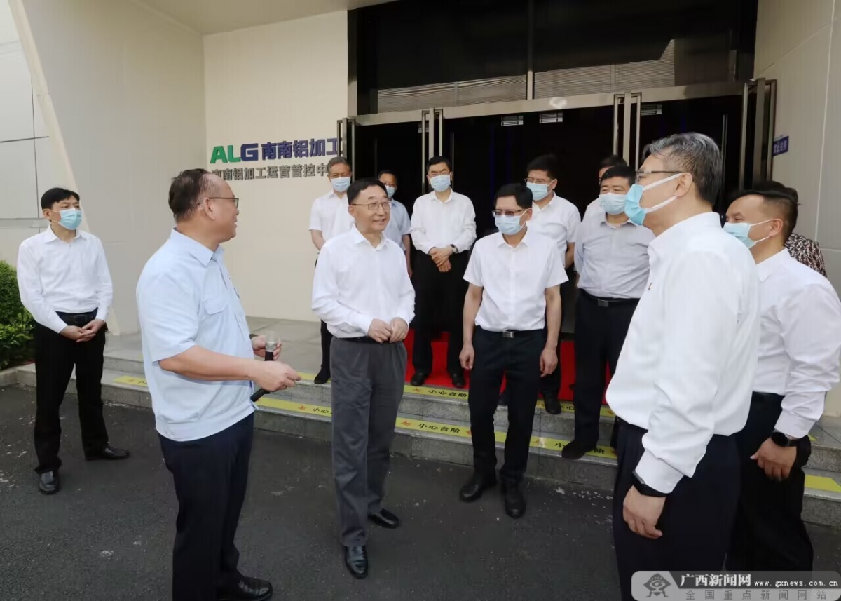刘宁、蓝天立、孙大伟等实地考察广西南南铝加工有限公司。记者 黄克 摄