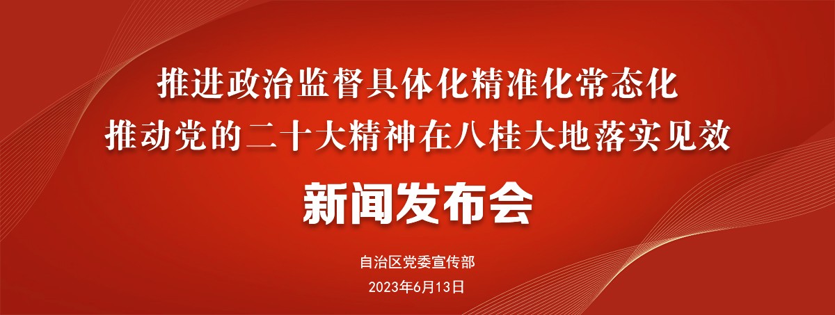 大家上午好!很高兴和媒体朋友们见面,借此机会,我代表自治区纪委常委会感谢各位长期以来对广西纪检监察工作的热情关注和大力支持。按照发布会安排,我和大家交流的主题是“推进政治监督具体化精准化常态化,推动党的二十大精神在八桂大地落实见效”。