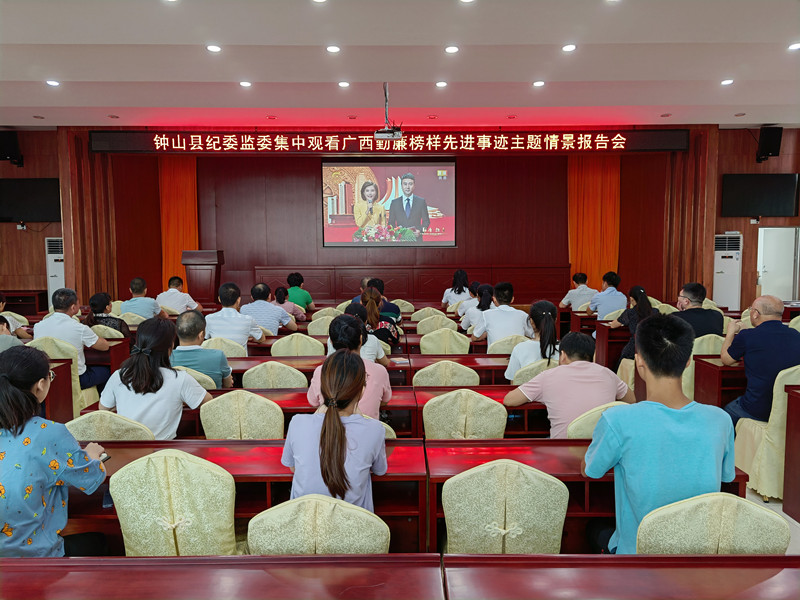 6月24日至25日,钟山县组织全县党员领导干部通过电视、网络、手机客户端等方式收看广西卫视播出的《勤廉·担当——广西勤廉榜样先进事迹主题情景报告会》实况录像,迅速掀起一股学习勤廉榜样先进事迹热潮。